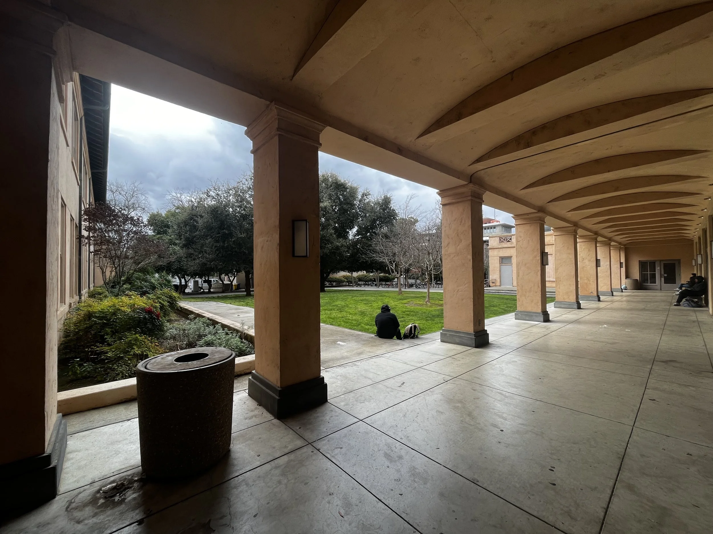 As you can see in the bottom section, close to the Hart Hall building on the left, I have trees providing shade and seats installed on the deck, so that students can sit under the tree and enjoy the outdoor environment without exposing themselves to the sun.