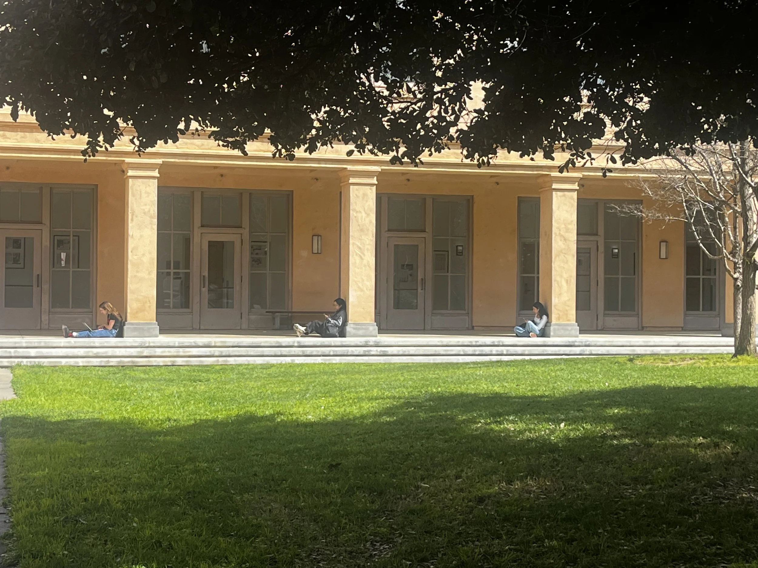 They needed somewhere in the shade but enjoyed the outdoor environment at the same time. There are benches along the wall in this photo, but students still choose to sit on the ground, it shows that they really wanted to be outdoors, close to open space.