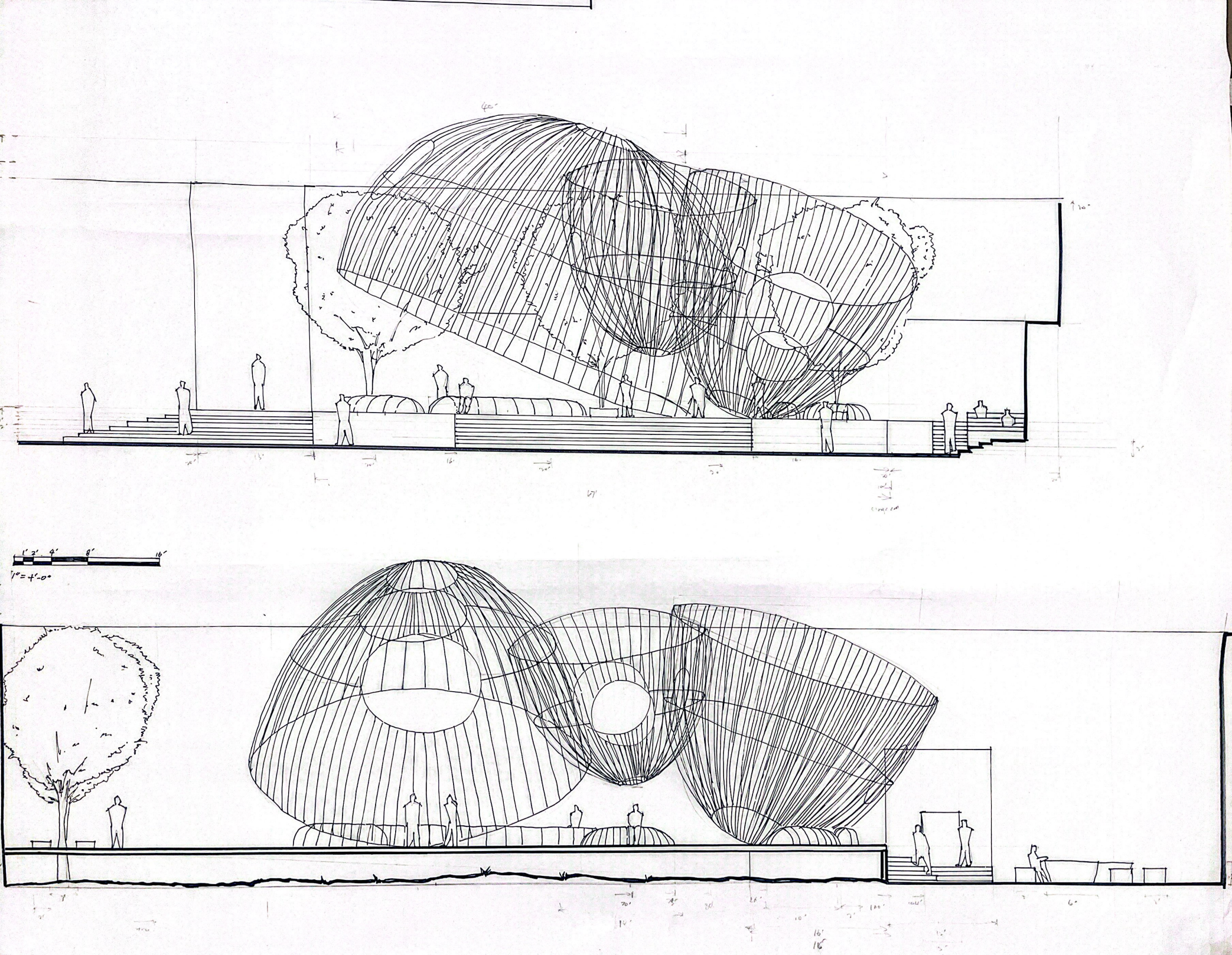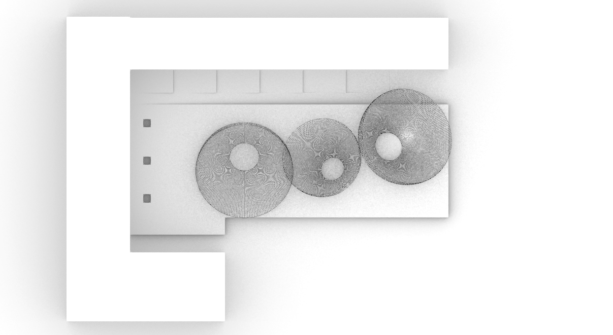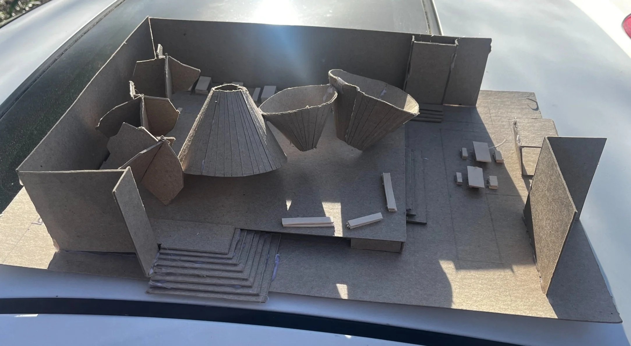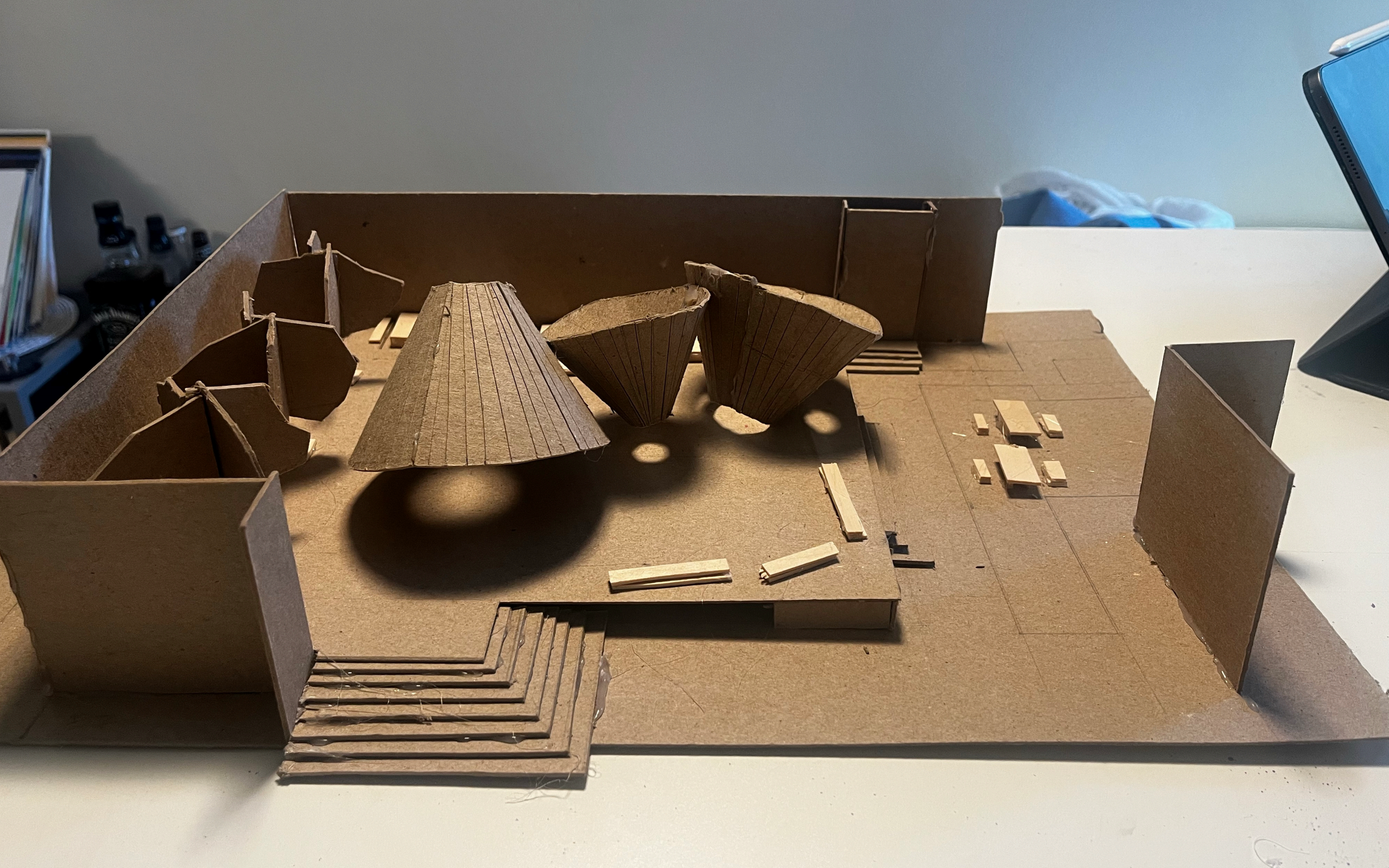 Since digital modeling was not part of this assignment, I only modeled the very essential part of the project———the Hart Hall, the 3 Annual Rings, and the deck holding them.